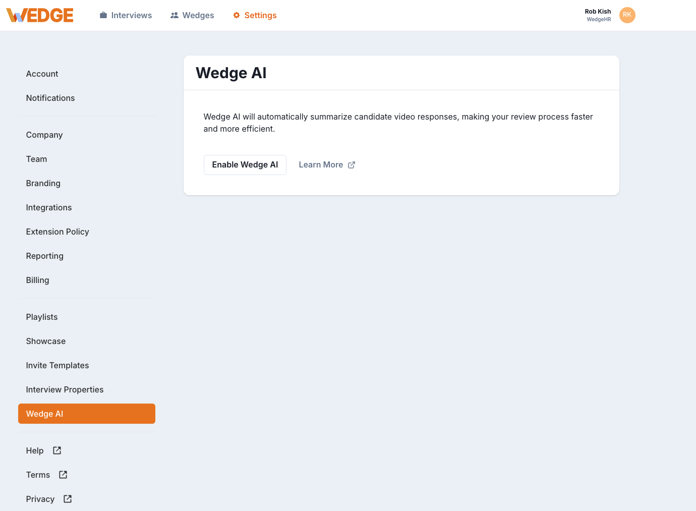Wedge is excited to introduce AI Summaries, a new feature designed to save time and improve collaboration during the candidate review process. This AI-powered tool automatically generates concise summaries of candidate responses in Wedge interviews, giving you a quick overview of key insights without the need to rewatch the entire video. This guide will walk you through everything you need to know to enable, use, and get the most out of this feature.